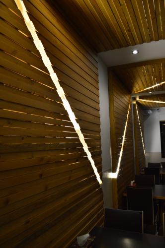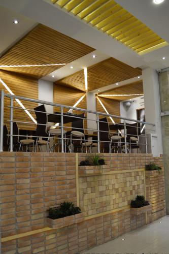Alma is a Fast Food that aims to create a serene and cozy ambiance within its 185 square meter space, complete with a balcony, kitchen, and VIP section. The design concept emphasizes the connection between humans and nature, utilizing natural elements such as water, greenery, pine wood, natural stones, and handmade bricks. The color scheme is carefully crafted to ensure harmony between the design components and colors. To maintain a calm atmosphere and conserve energy, the lighting system is equipped with LED lights, which significantly reduce energy consumption.